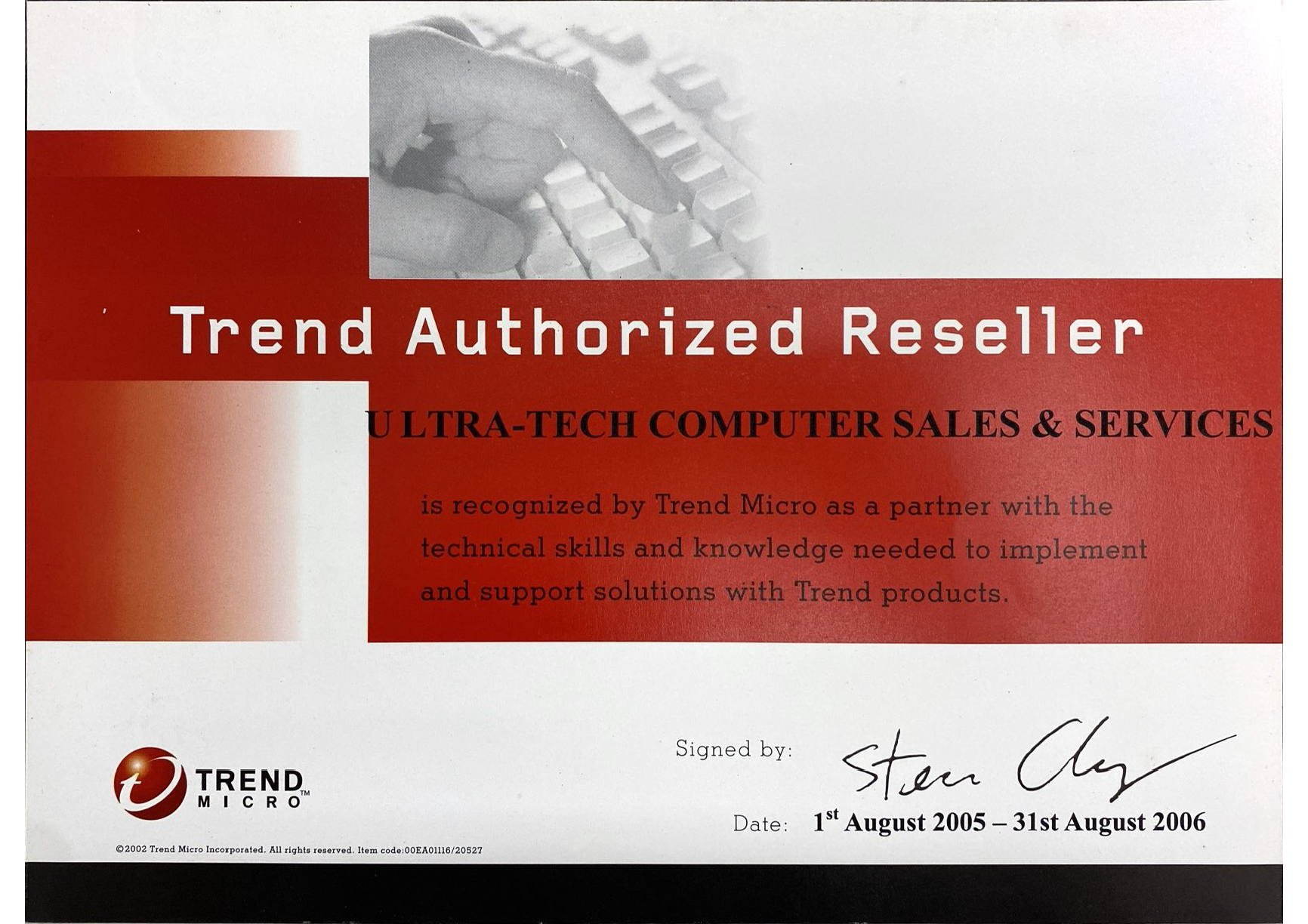 One of the oldest certificate of the company. As an Trend Micro partner, Ultra-Tech has access to solutions to monitor threats, resolve issues, and provide multiple layers of protection to our clients. These services are flexible based on your needs but provide end-to-end coverage for your systems.